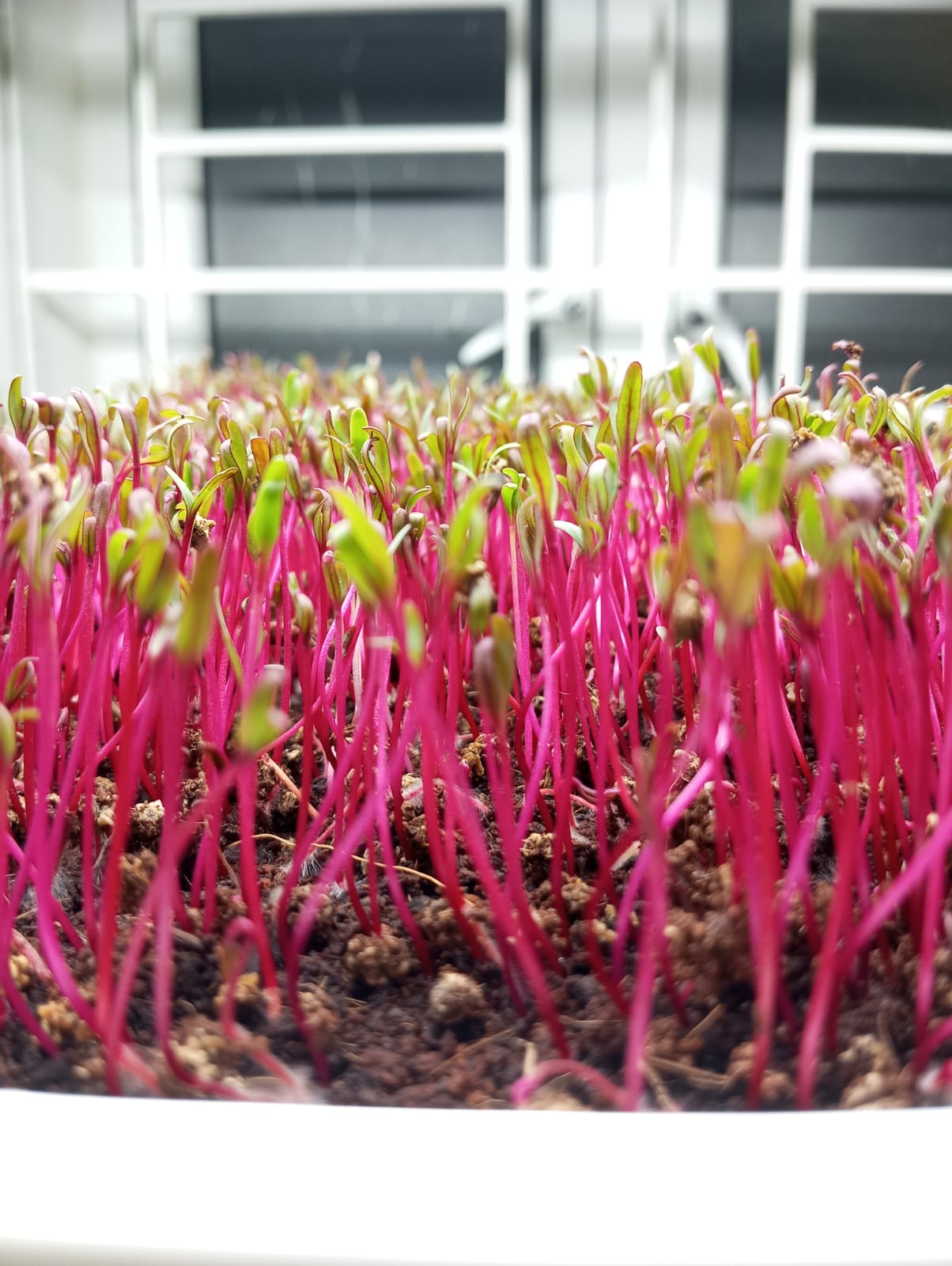 Vibrant beetroot microgreens with a mild, earthy sweetness and striking red stems. Fresh, nutrient-rich, and perfect for salads and garnishes.